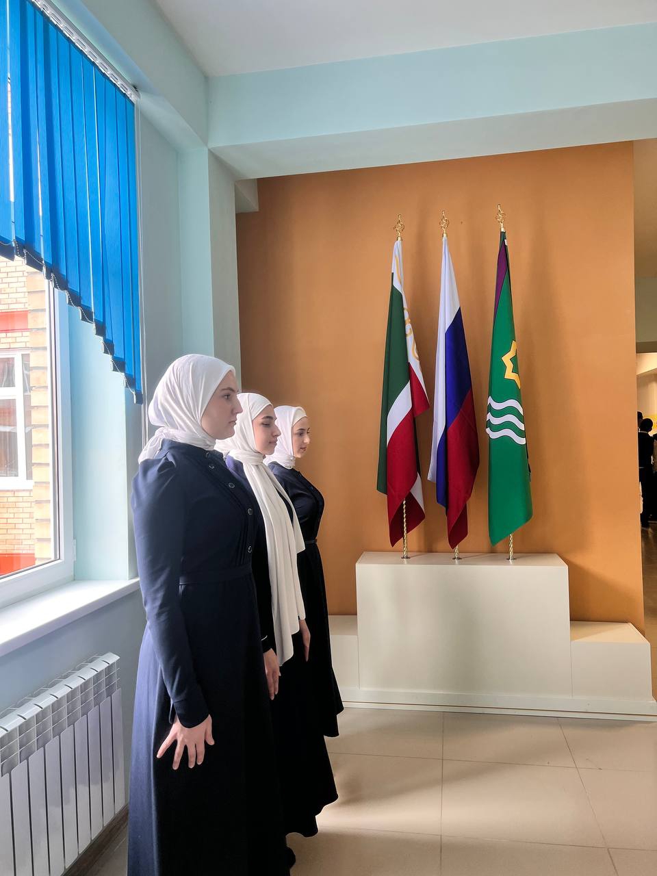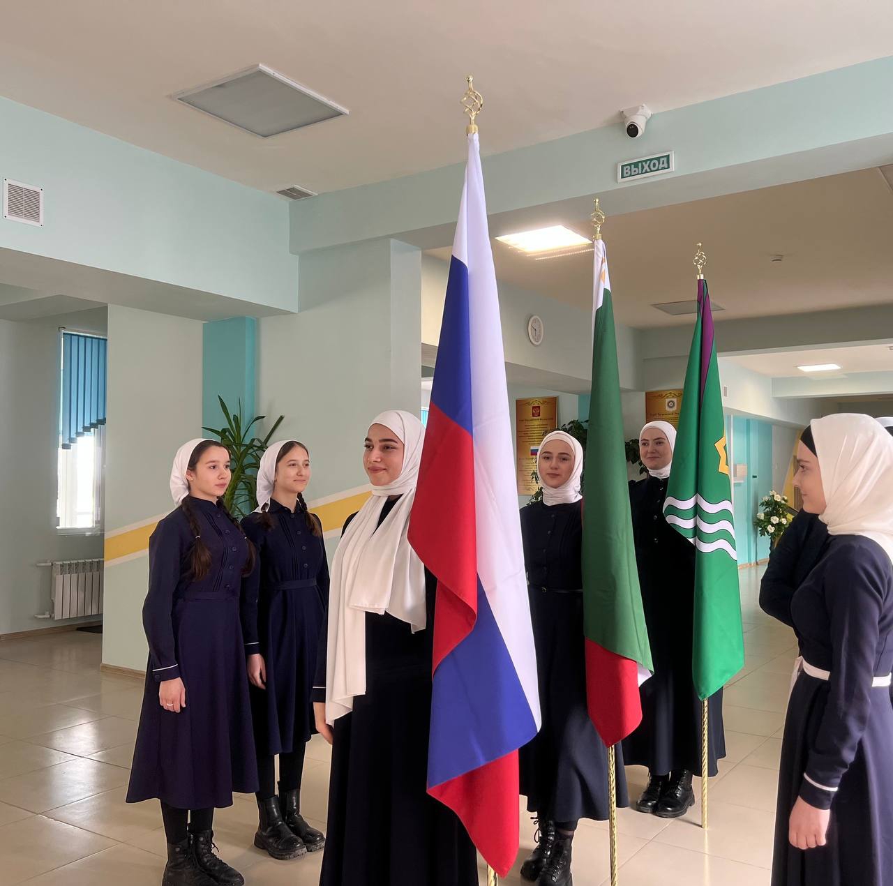 Новый год в МБОУ «СОШ 3 им. Р. И. Гайрбекова» начался с торжественной церемонии поднятия флагов Российской Федерации, Чеченской Республики, Ачхой-Мартановского муниципального района и исполнения гимна