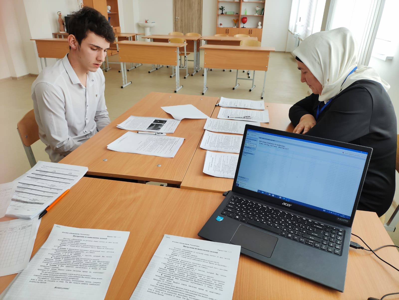 Во исполнение пункта 17 Порядка проведения государственной итоговой аттестации по образовательным программам основного общего образования, утвержденного приказом Минпросвещения России № 189, Рособрнадзора № 1513 от 07.11.2018 (далее - Порядок ГИА-9) в МБОУ «СОШ №3 с. Валерик им. Р. И. Гайрбекова» провели итоговое собеседование. Итоговое собеседование с участниками 9 классов в соответствии с инструкцией для собеседника из письма Рособрнадзора от 22.11.2022 № 04-435, провели экспертные-собеседники учителя русского языка и литературы. Технический специалист обеспечил получение КИМа итогового собеседования от РЦОИ, а также обеспечил подготовку технических средств для ведения аудиозаписи в аудиториях проведения итогового собеседования и для внесения информации в специализированную форму, выполнили функции согласно Инструкции для технического специалиста обр азовательной организации из письма Рособрнадзора от 22.11.2022 № 04-435.