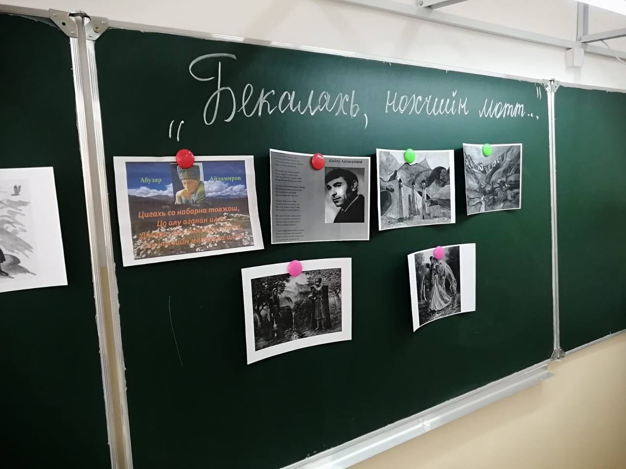 Педагог составил для учеников конспект и наглядные пособия в виде образцов картин чеченских писателей. В ходе урока обучающимся были заданы вопросы, с целью выявления знаний биографии чеченских писателей и поэтов.