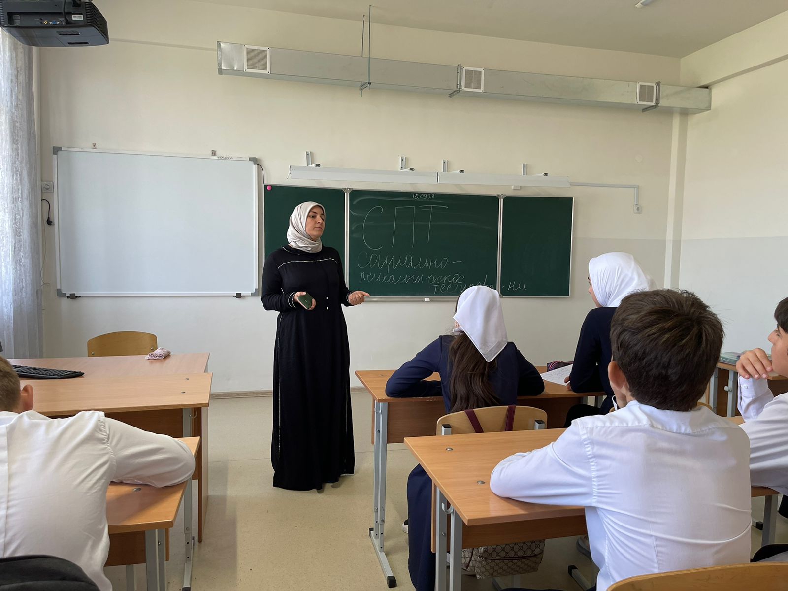 Педагог-психолог провела беседу с учащимися 7-х классов МБОУ "СОШ √3 им. Р.И. Гайрбекова." на тему "Социально-Психологическое тестирование"