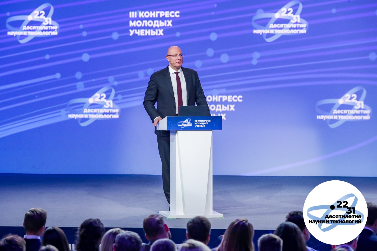 Заключительным мероприятием III Конгресса молодых ученых стало пленарное заседание на тему «Наука: пространство возможностей». Оно прошло под председательством заместителя Председателя Правительства Российской Федерации Дмитрия Чернышенко. Во вступительном слове он сказал: «Первоочередная задача, поставленная Владимиром Путиным – укрепление технологического суверенитета. Для этого страна должна сама себя обеспечивать всей критически значимой продукцией – микроэлектроникой, станками, транспортом, медикаментами, продуктами питания. Именно такие производственные цепочки лежат в основе «мегапроектов». При этом мы понимаем, что добиться успехов в экономике в целом и в промышленном производстве в частности невозможно без ученых и их прорывных идей. Это глобальная задача для науки. Поэтому Правительство продолжит создавать все условия для комфортной работы исследователей».