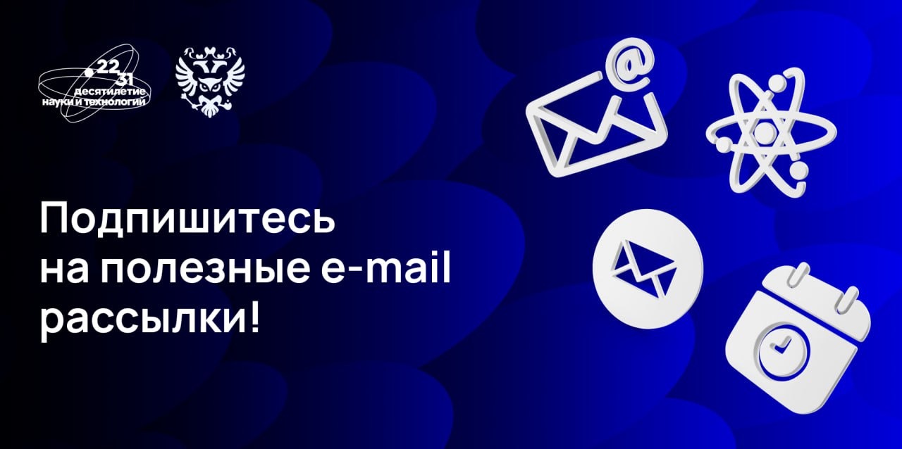Каждый ученый должен знать! Чтобы быть в курсе всего важного и полезного для молодых ученых и тех, кто планирует ими стать, срочно подписывайтесь на две рассылки: 1) Дайджест "Молодежь в науке" от @minobrnaukiofficial. Рассылка выходит каждые две недели и включает в себя актуальные новости о мерах поддержки, грантах, стипендиях и конкурсах, а также научных конференциях. Подписаться можно по ссылке (https://sendsay.ru/form/x_1647439444882059/2/). 2) Рассылка новостей и полезных материалов от @npnauka – официального ресурса Десятилетия науки и технологий. Рассылка будет полезна как ученым, так и всем, кто интересуется современной наукой. Подписаться можно тут (https://xn--80aa3ak5a.xn--p1ai/#subscribe). Наука.рф #десятилетиенауки
