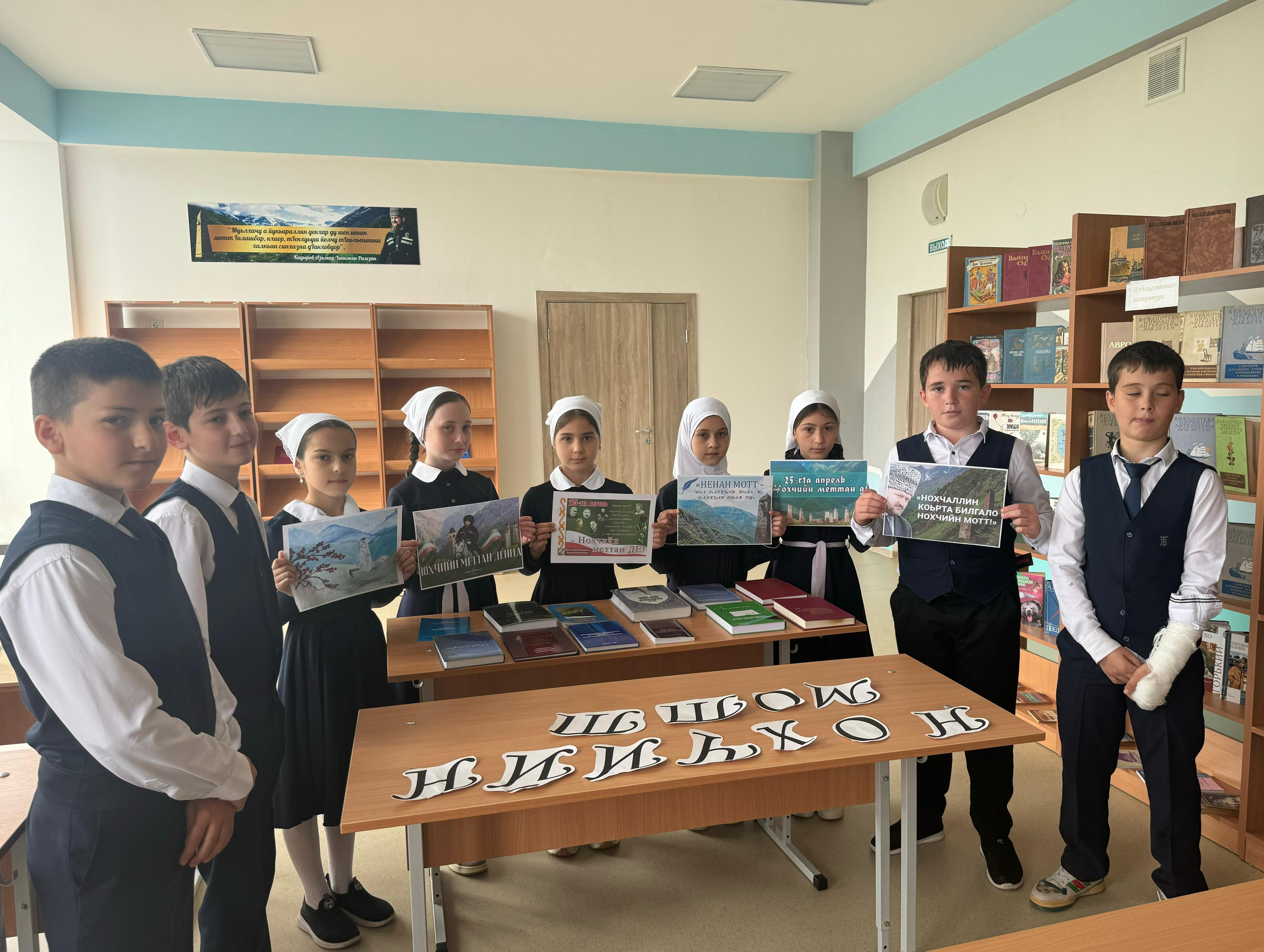 25 апреля День Чеченского языка. Праздник был установлен в 2007 году по приказу главы Чеченской Республики Р.Кадырова для популяризации Чеченского языка. В библиотеке была пройдена книжная выставка «Лаьмнашкахь ткъес» к -90 летию со дня рождения (1933-2005) Абузара Абдулхакимовича Айдамирова,поэта,писателя,публициста,члена Союза писателей ЧР и РФ. Были приглащены обучающие 5 класса. Обучающиеся ознакомились с произведениями А.Айдамирова.