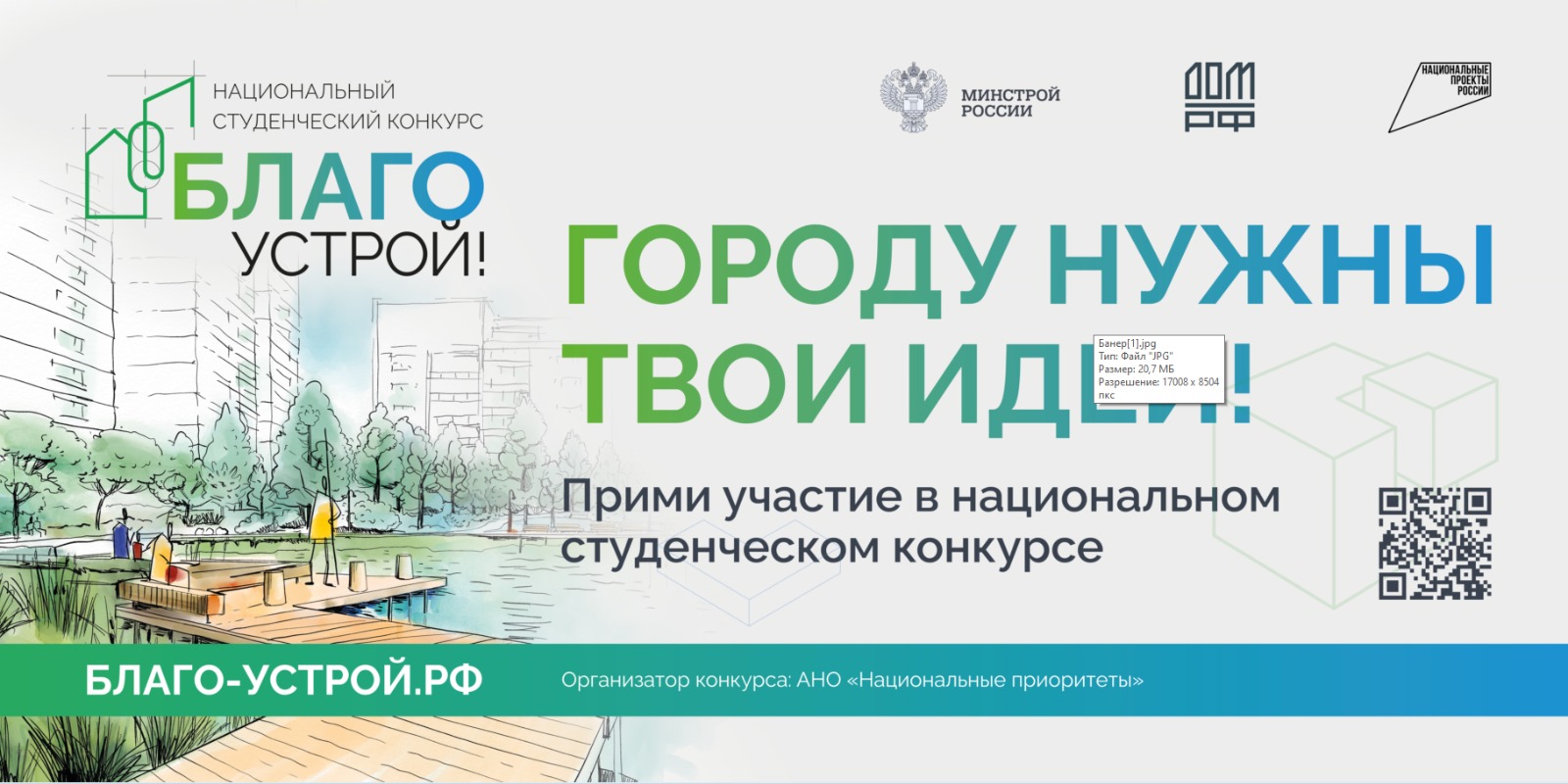 С 15 сентября 2024 года на сайте благо-устрой.рф открылся прием заявок на участие в Национальном студенческом конкурсе «Благоустрой!» по разработке проектов благоустройства городских пространств. Конкурс организует АНО «Национальные приоритеты» совестно с Минстроем России и Институтом развития ДОМ.РФ.